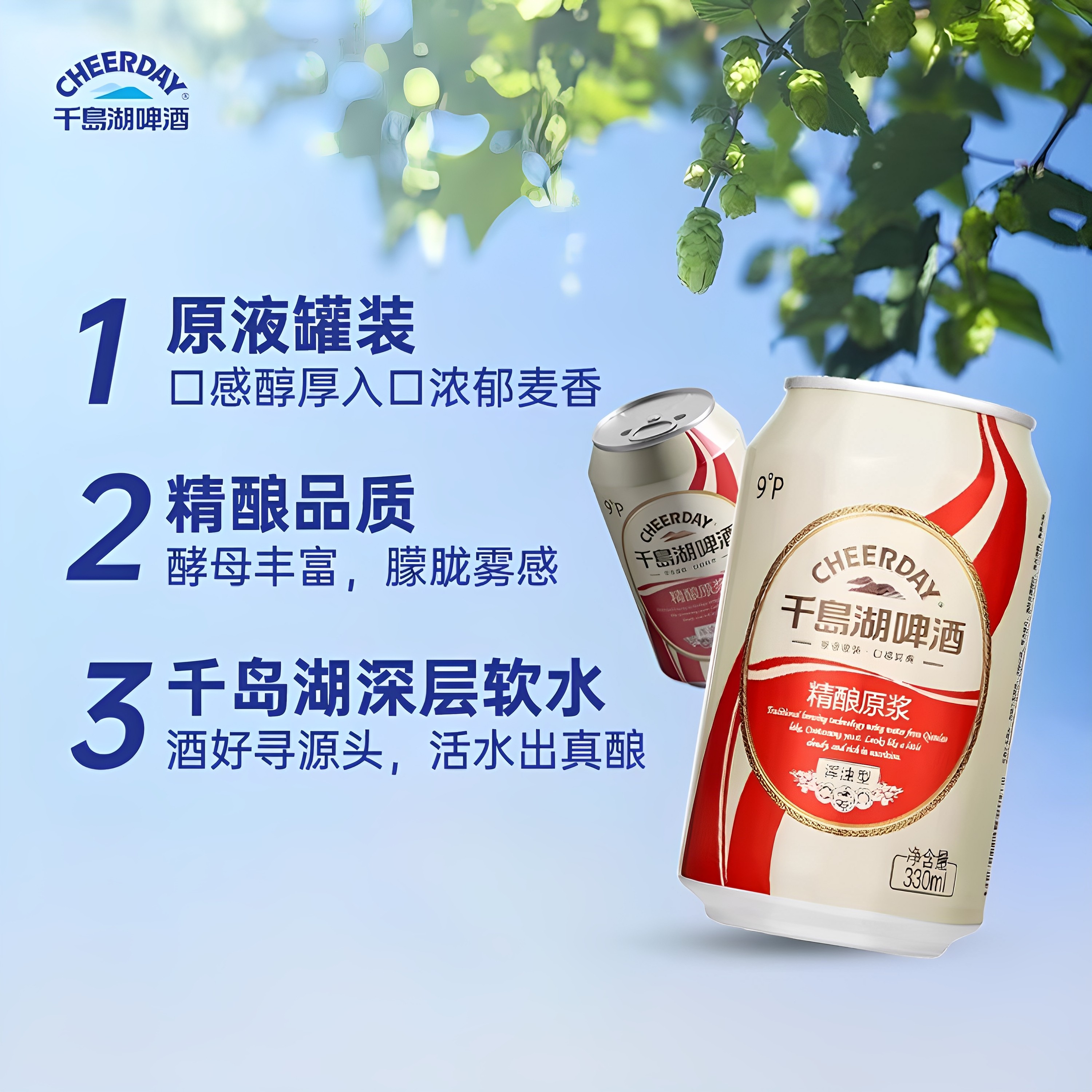 千岛湖啤酒精酿原浆330ml 全麦24听官方旗舰店整箱批发 24瓶罐装