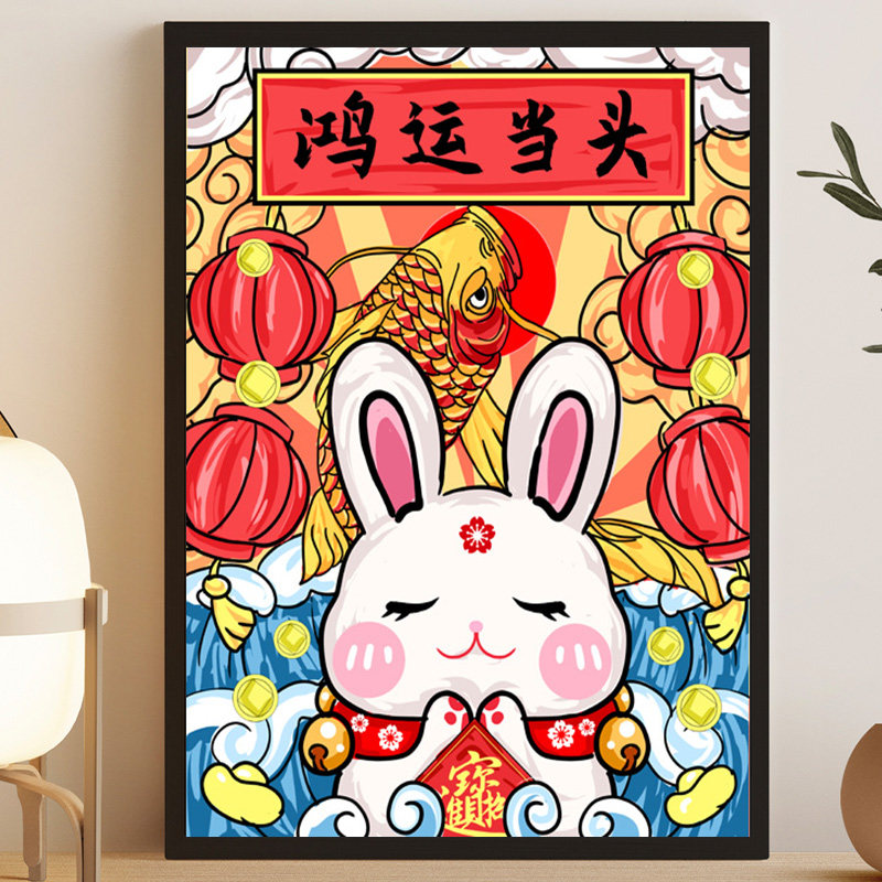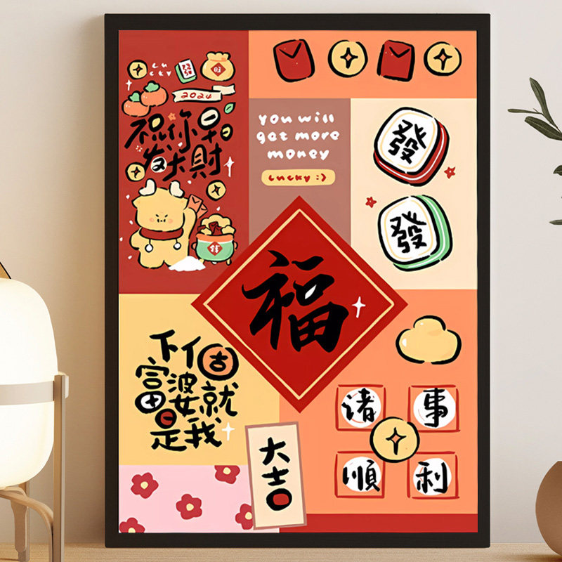 财神爷数字油画diy手绘油彩五福临门装 饰画填充丙烯挂画2025新款