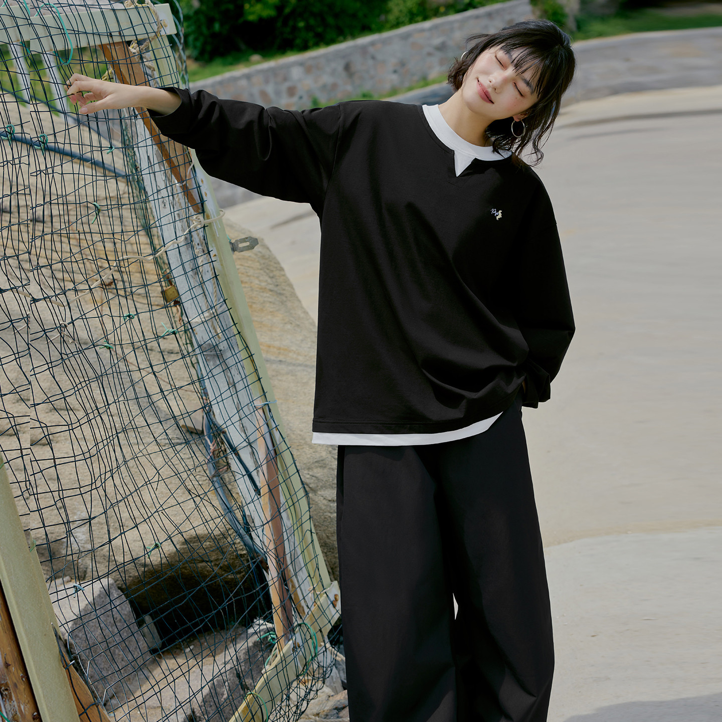 女装 男装 假两件索罗娜针织刺绣小狗撞色v领上衣情侣T恤 Brand PSO