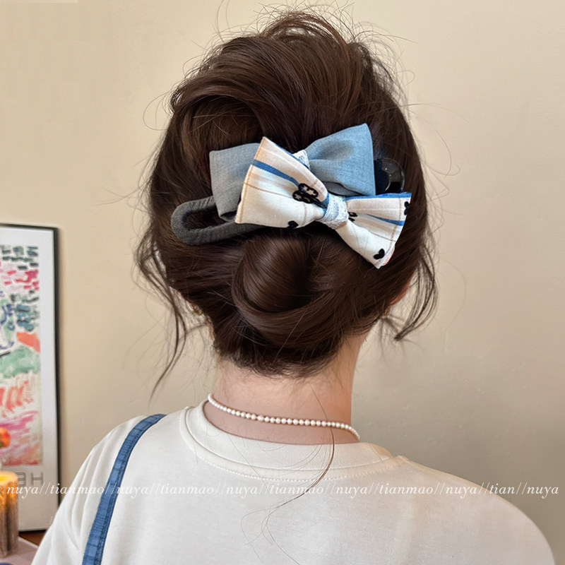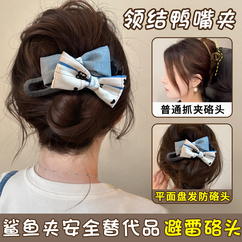 撞色蝴蝶结鸭嘴夹发夹后脑勺抓夹女高级感2026新款 大号一字夹头饰
