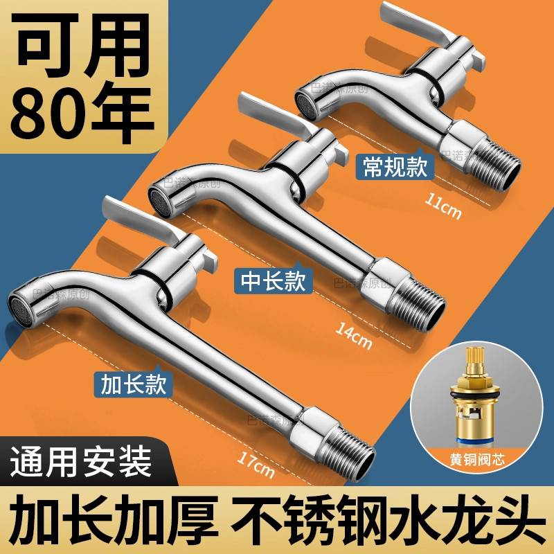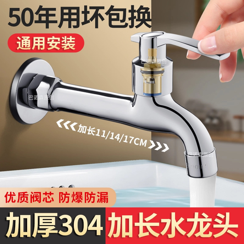JOMWA牧王阳台加长水龙头单冷家用304不锈钢入墙式 专用4分洗衣机
