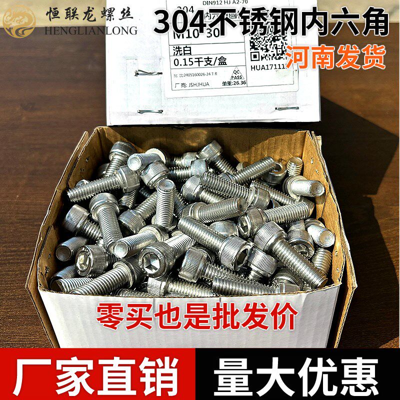 304不锈钢内六角螺丝DIN912圆柱头滚花螺栓杯头螺钉M4M5M6M8M10