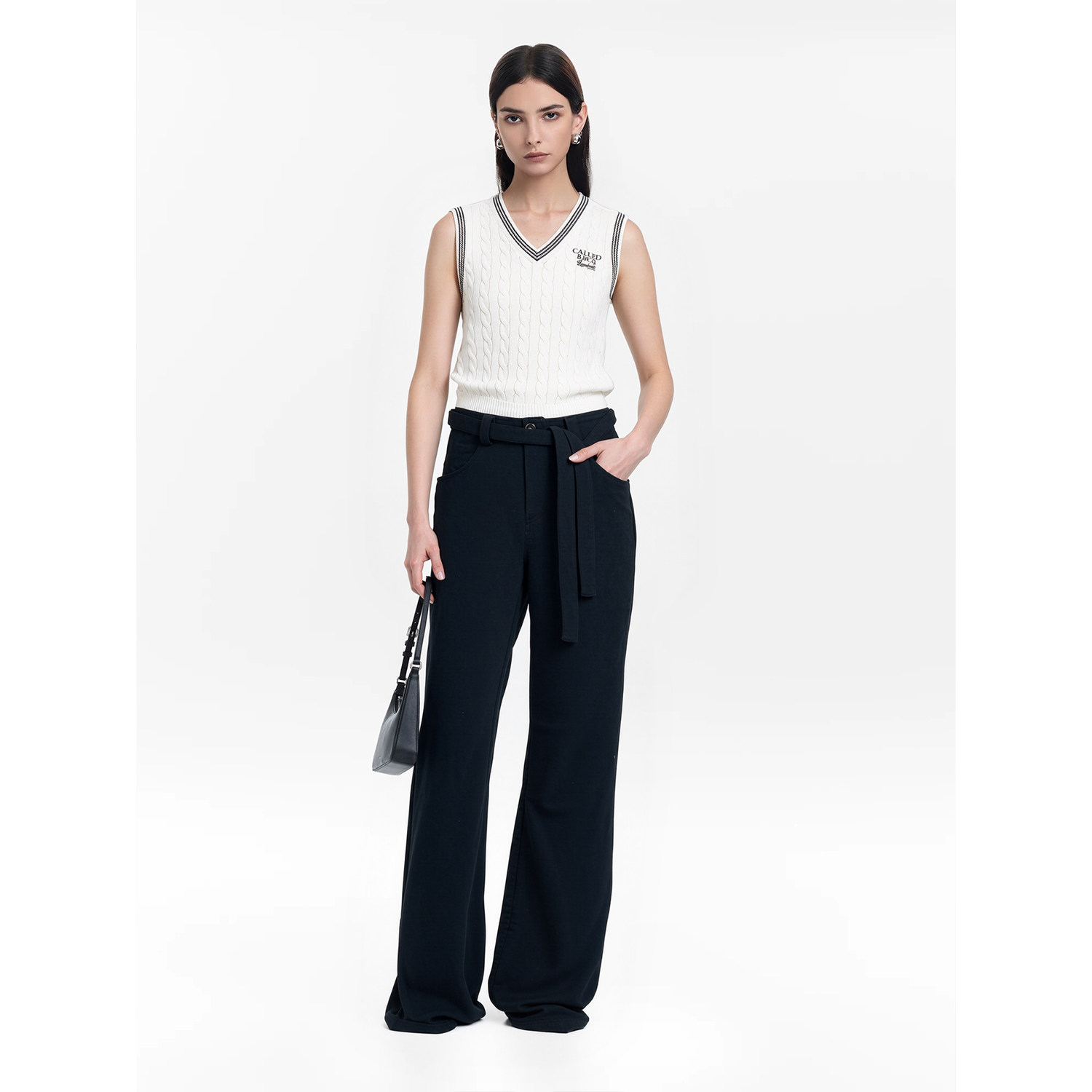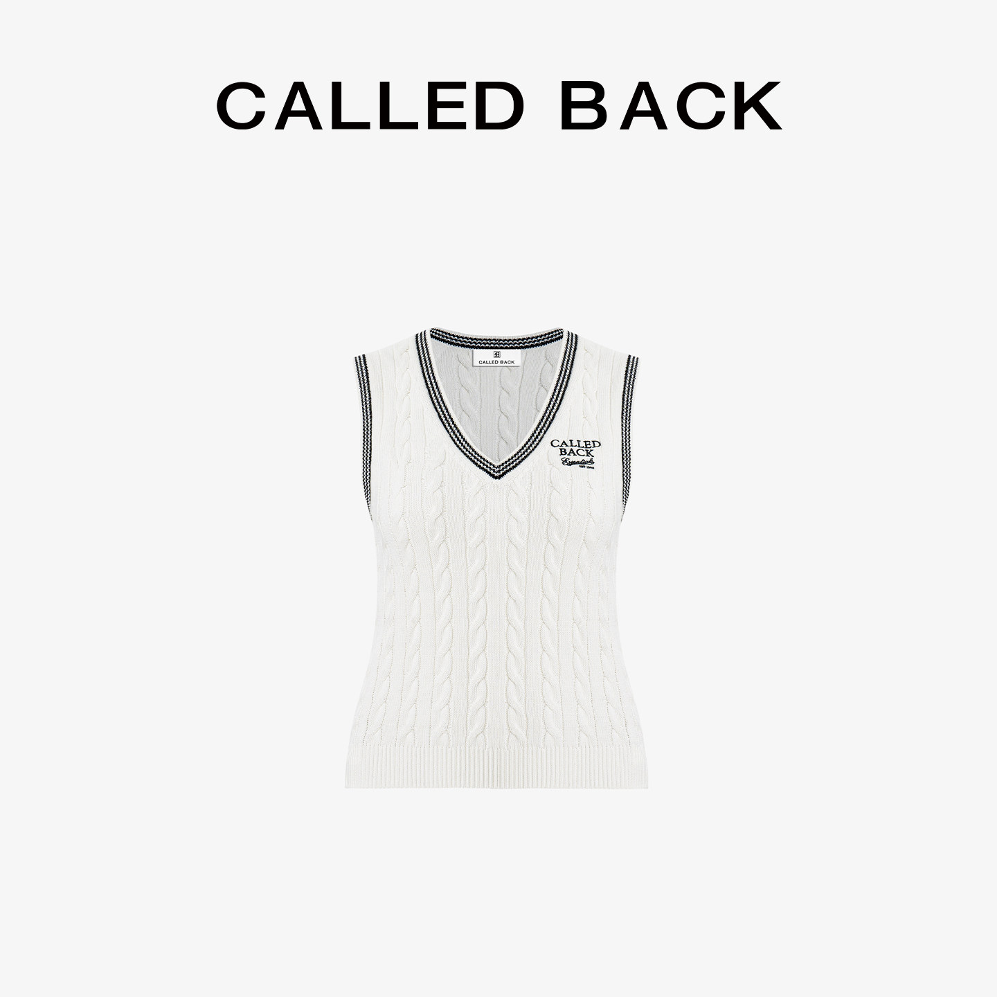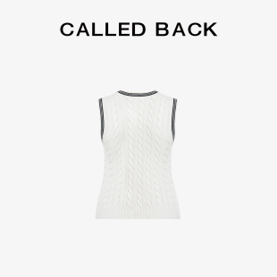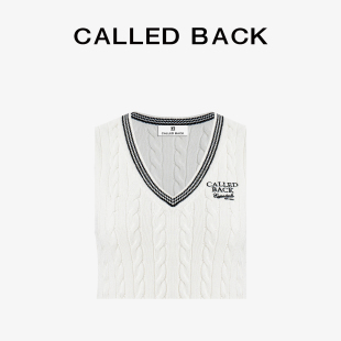 上衣 撞色刺绣V领学院风无袖 CALLED BACK针织背心女2026春夏新款