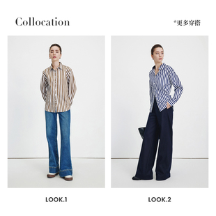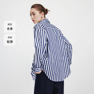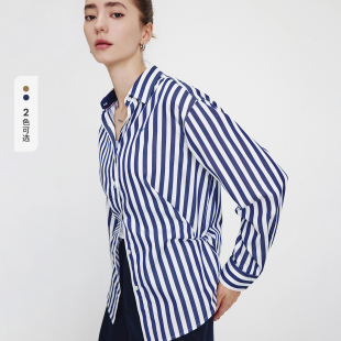 新款 女士2026春季 纯棉衬衣 衬衫 Navigare意大利小帆船蓝色条纹长袖