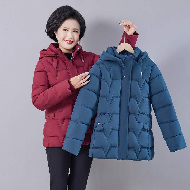 厚棉服外套洋气短款 秋冬加绒保暖小棉衣妈妈装 棉袄 中老年女装 新款
