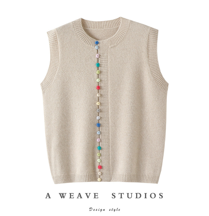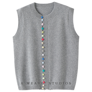 好穿 外套坎肩 纯手工彩虹扣加厚羊绒背心马甲纯羊绒毛衣针织开衫