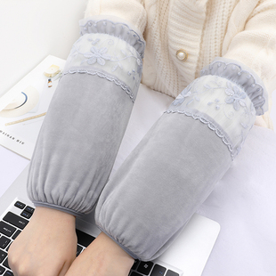 羽绒服袖 白色棉衣护袖 套女士秋冬季 蕾丝花边防污套袖 新款 加宽长款