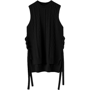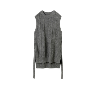 美到飙泪 毛衣马甲加厚 侧边绑带前短后长绞花羊绒背心女纯羊绒衫