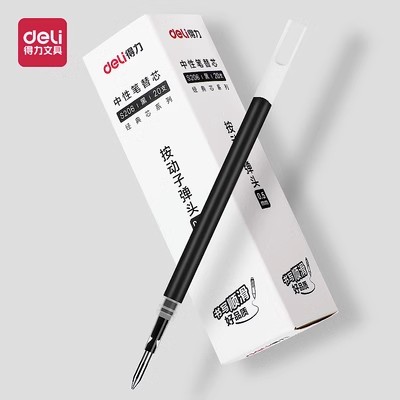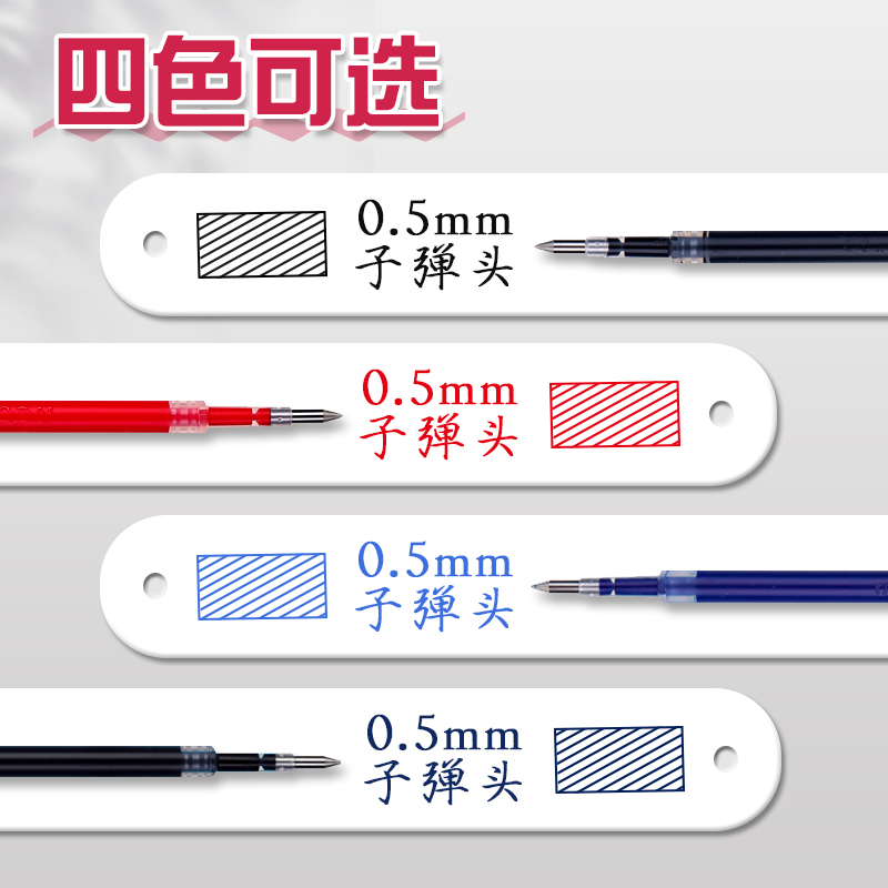 得力按动笔芯0.5子弹头黑色原装 中性笔 速干替芯红蓝墨蓝色按动式