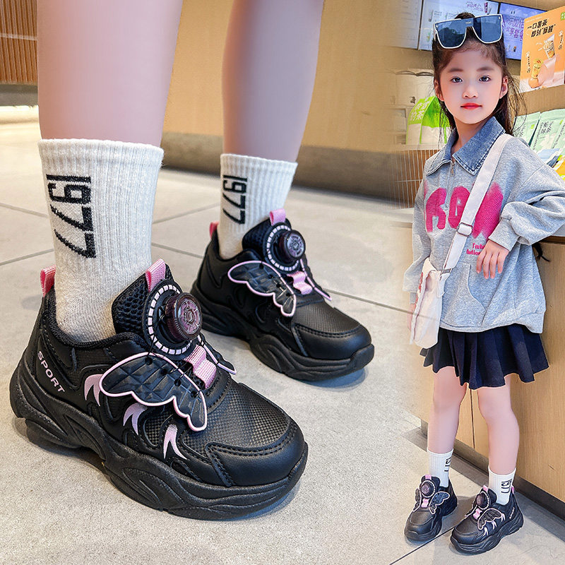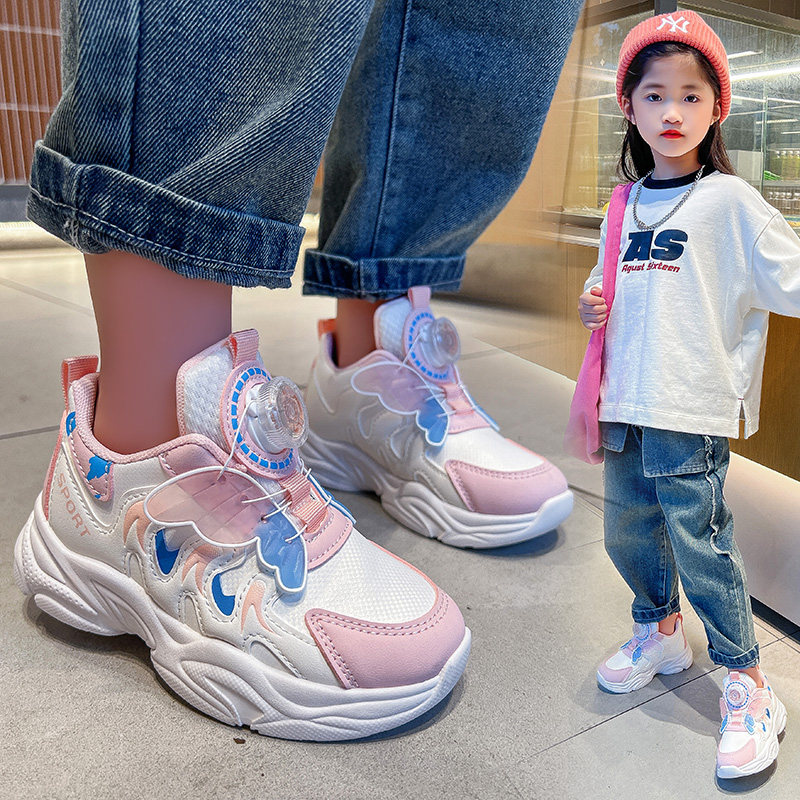2023新款 加绒棉鞋 女孩时尚 旋转纽扣儿童休闲鞋 潮 老爹鞋 女童运动鞋