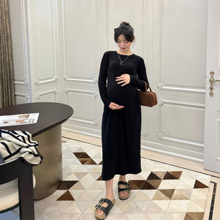 LeoMami孕妇装 秋冬设计感德绒褶皱连衣裙气质显瘦弹力内搭打底裙