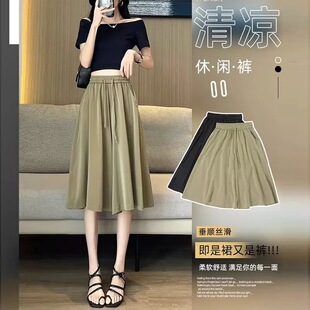 显瘦遮肉a字裙宽松休闲速干裙裤 冰丝阔腿七分裤 大码 薄款 子 女夏季