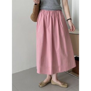 春夏秋季 松紧腰纯蓝色半身裙女伞裙遮肉宽松休闲显瘦A字纯棉裙子