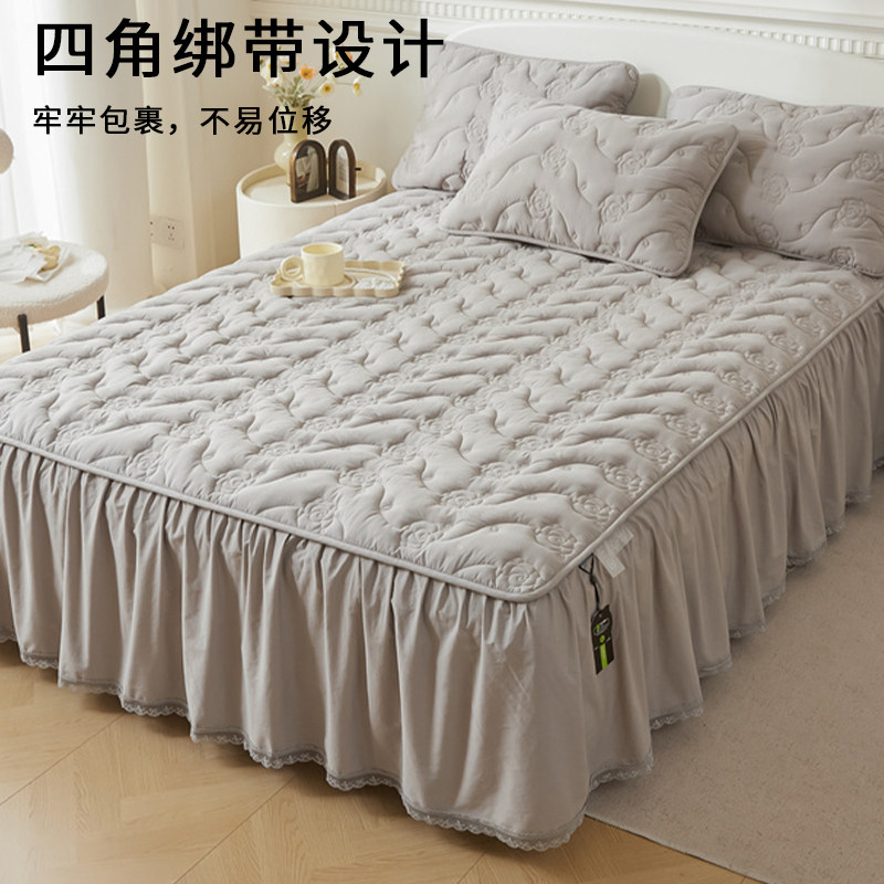 新款 1.8m床上三件套花边床群防滑床单保护套 夹棉床裙床罩单件1.5