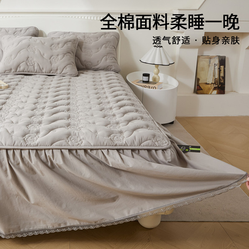 全棉床裙夹棉床笠单件纯棉床盖防尘床单床垫防滑三件套四季 通用