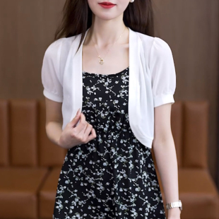 小坎肩吊带裙外搭百搭外披罩衫 小披肩黑色显瘦短袖 气质薄款 夏季