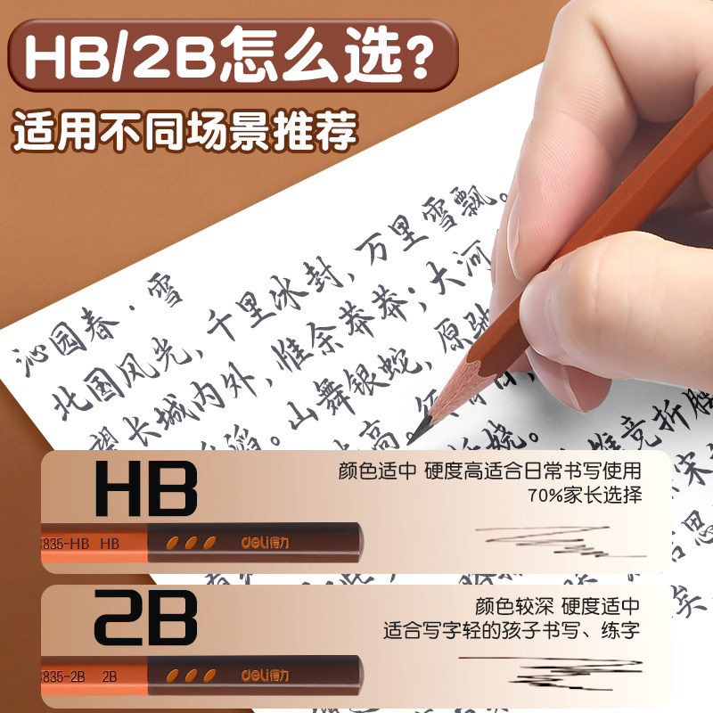 得力铅笔一二年级小学生专用2b铅笔考试专用hb铅笔小学生专用不易断绘图考试素描铅笔幼儿园儿童练字无铅毒