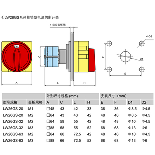 德力西万能转换开关LW26GS 04M2电源切断32A切换20A配电箱63A
