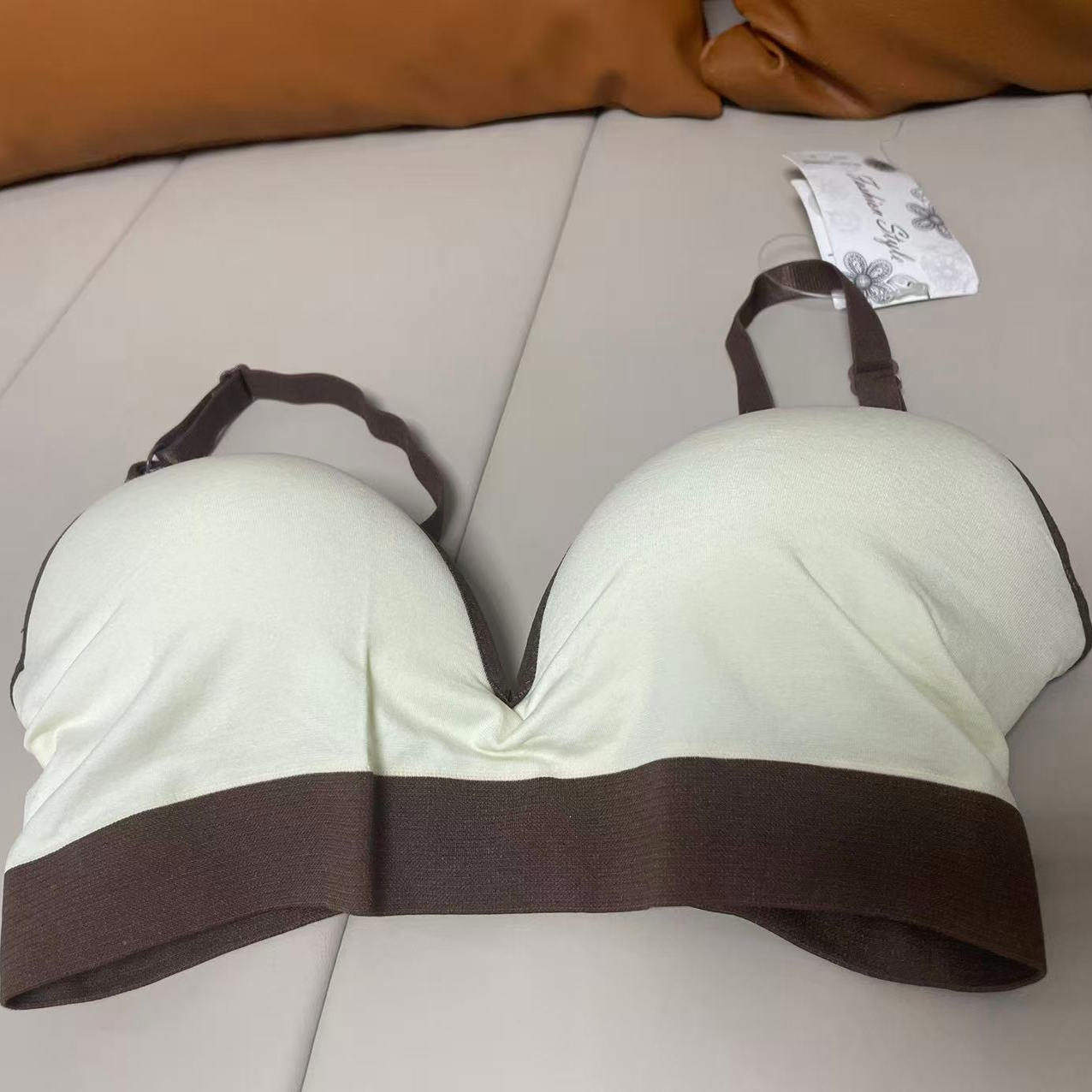 胸罩无钢圈文胸无痕搭扣上托莫代尔一片式 双排内衣女小胸聚拢薄款