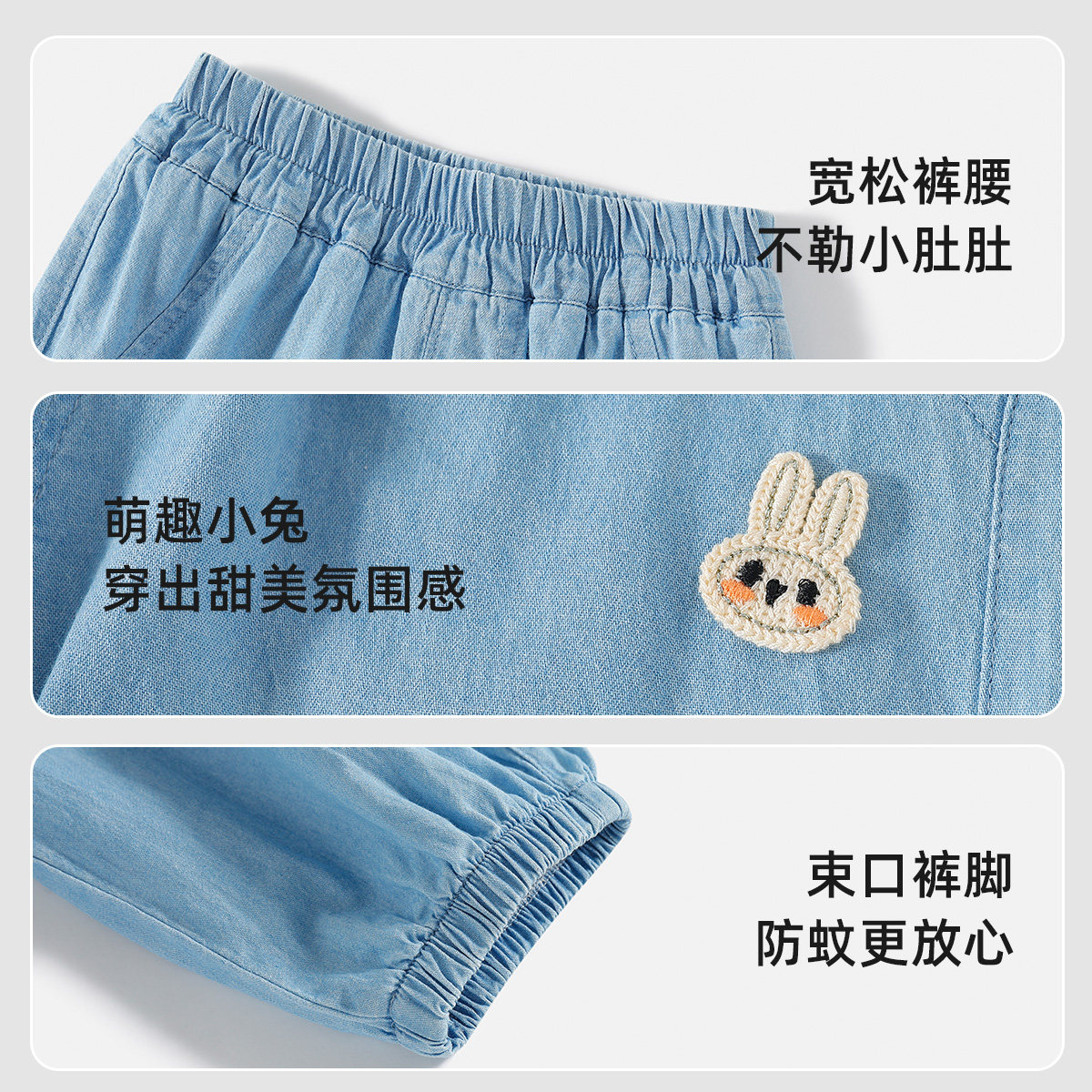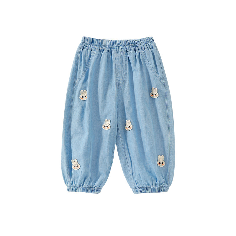 子婴儿童防蚊裤 洋气宝宝冰丝裤 薄款 束脚休闲裤 女童牛仔裤 夏季 夏装