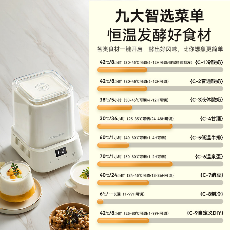 卡士酸奶机家用小型全自动制冷多功能1L大容量发酵机料理机纳豆机