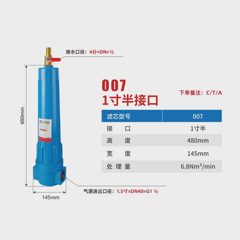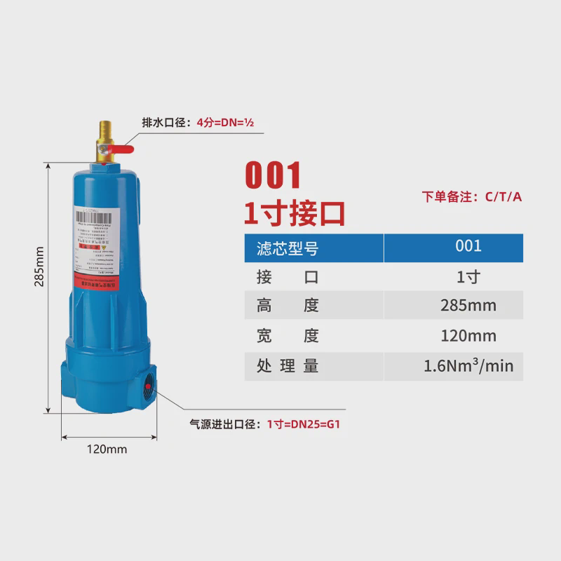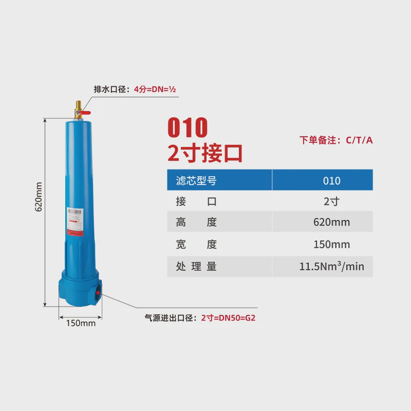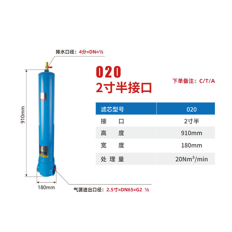 CTA压缩空气精密过滤器空压机油水分离器自动排水气泵冷干机干燥