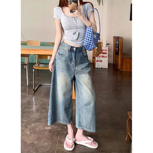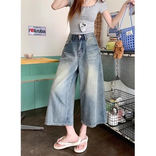 高腰显瘦宽松直筒高个子拖地裤 丹宁蓝阔腿牛仔裤 女2025年秋冬新款