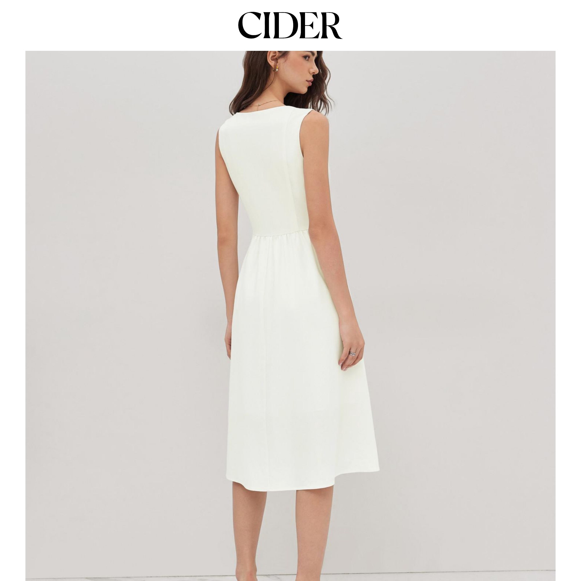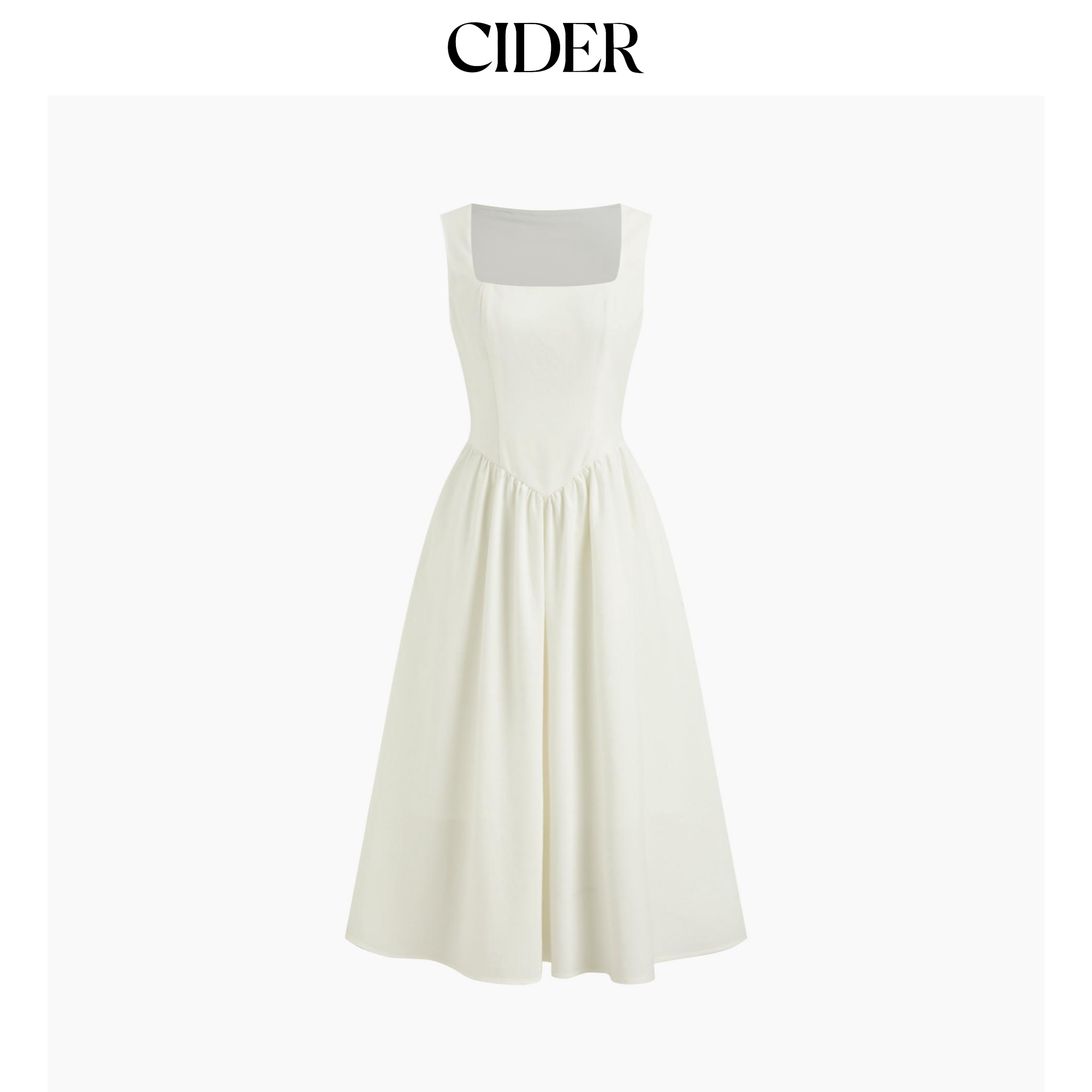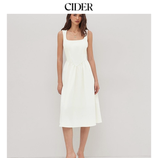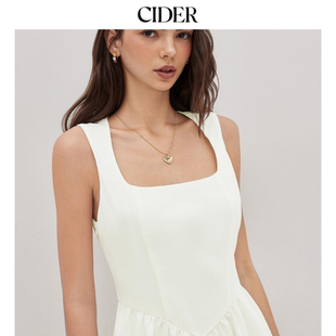 亚麻荷叶边中长款 女装 CIDER夏季 方领连衣裙114498574 明星同款