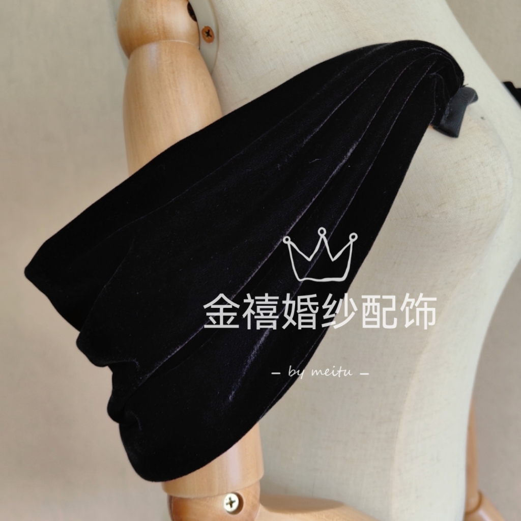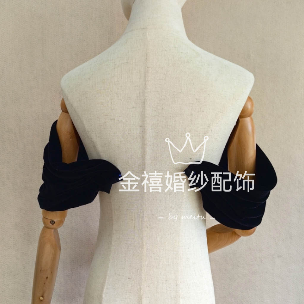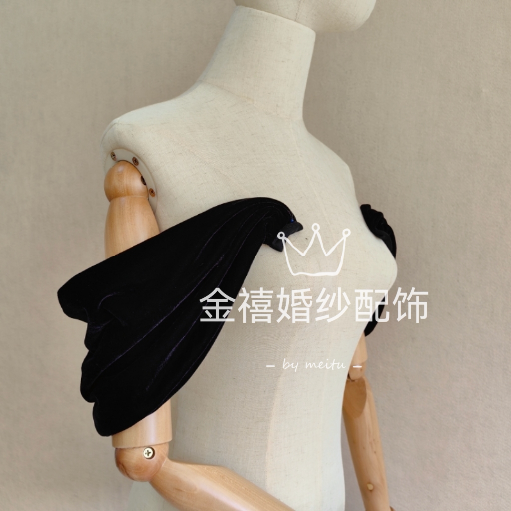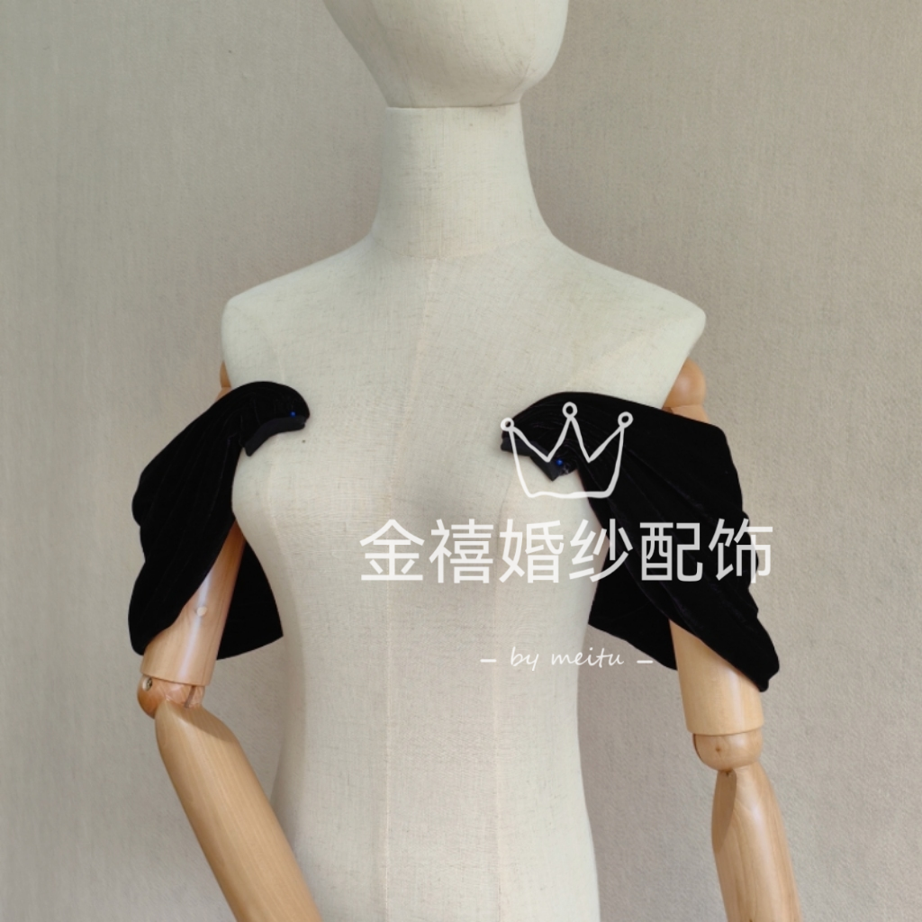 黑色丝绒一字领肩带婚纱礼服彩妆配饰遮手臂肩带抹胸礼服搭配