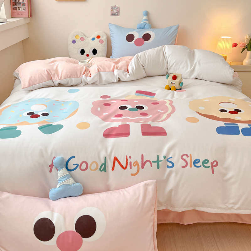 卡通透气被套三件套笠亲可爱床床上款 件套被罩肤四学生宿舍床单