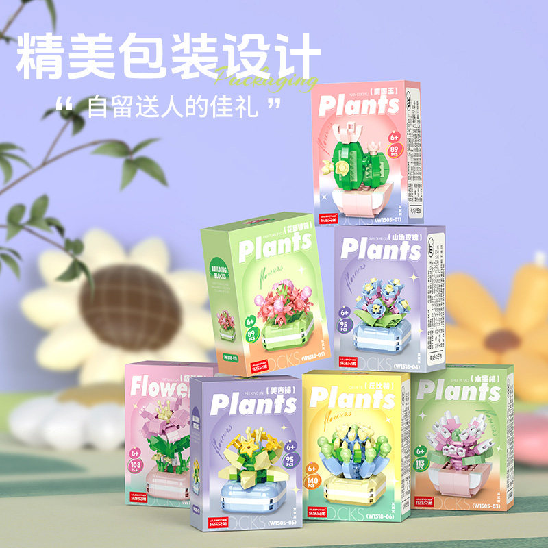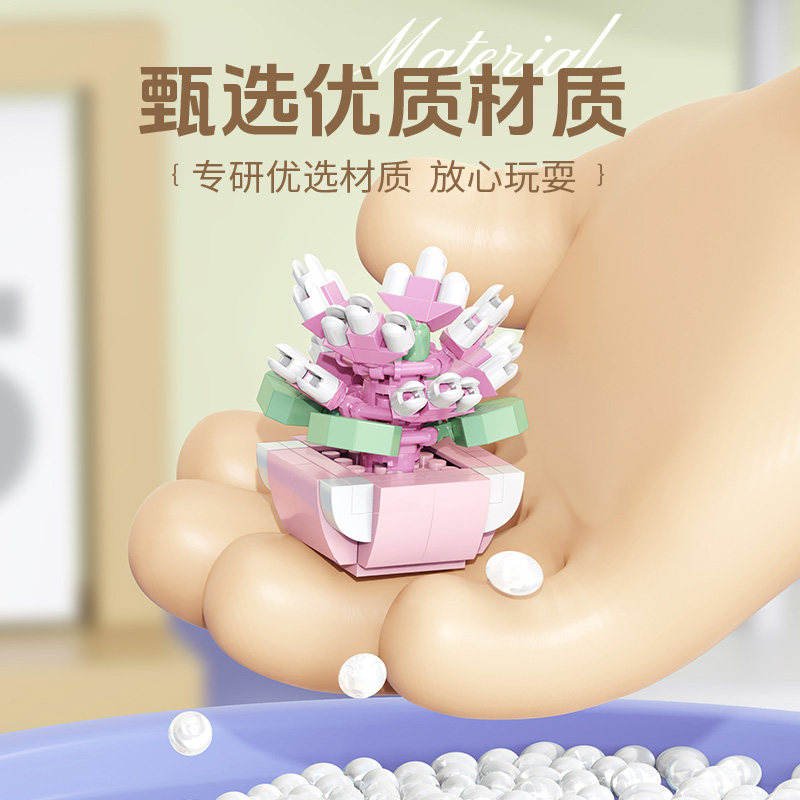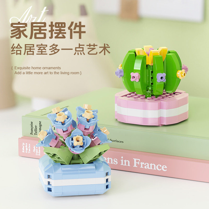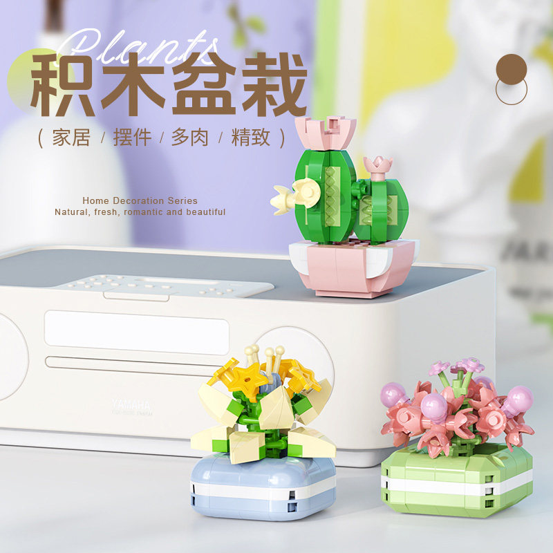 乐乐兄弟盆栽摆件儿童益智拼装 微颗粒多肉植物积木男孩子玩具礼物