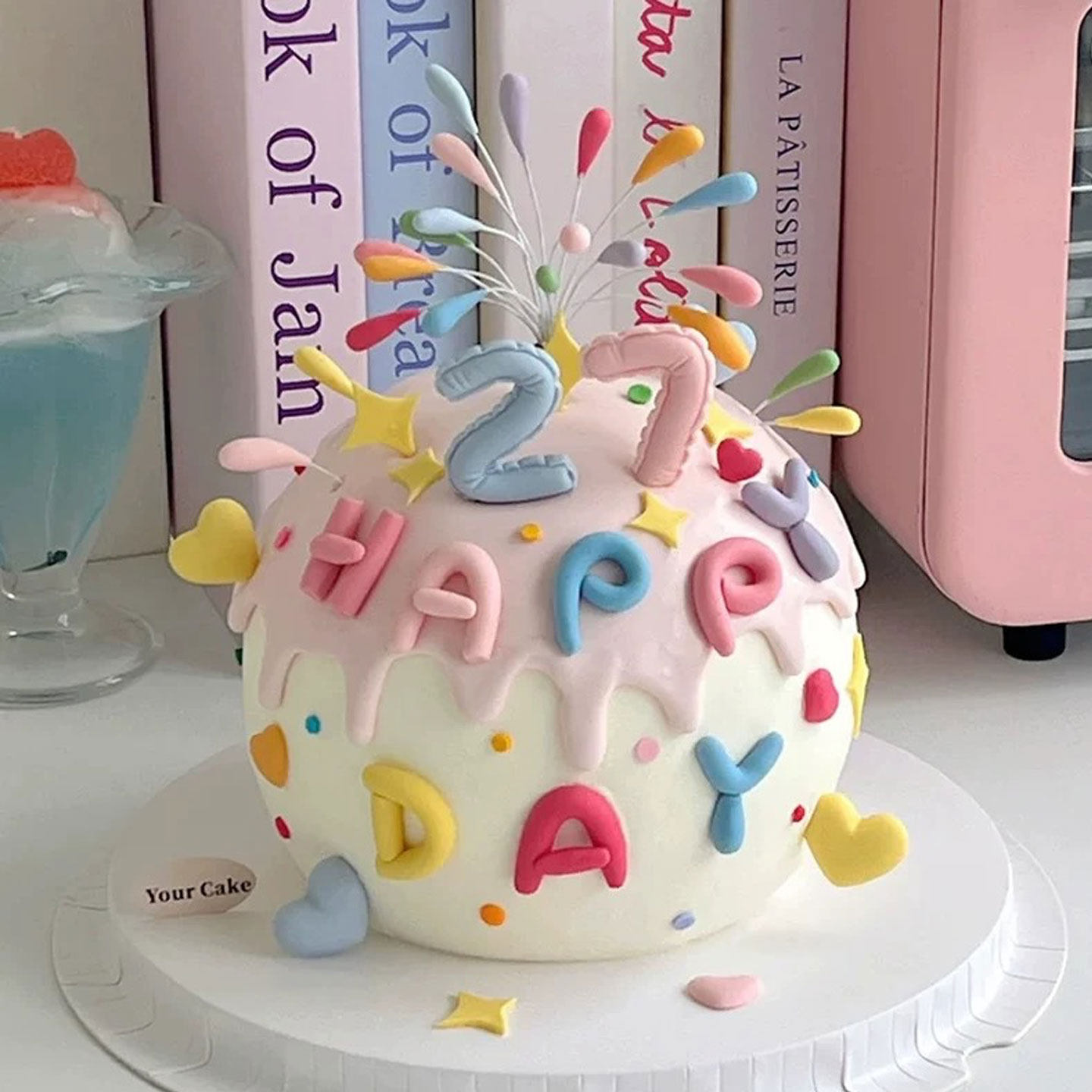 网红彩色礼花蛋糕装 birthday字母气球数字爱心模具烘焙 饰happy