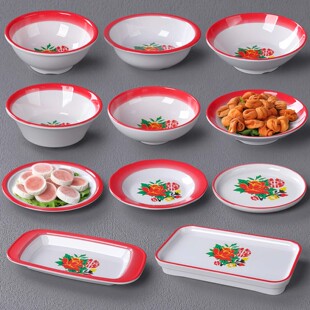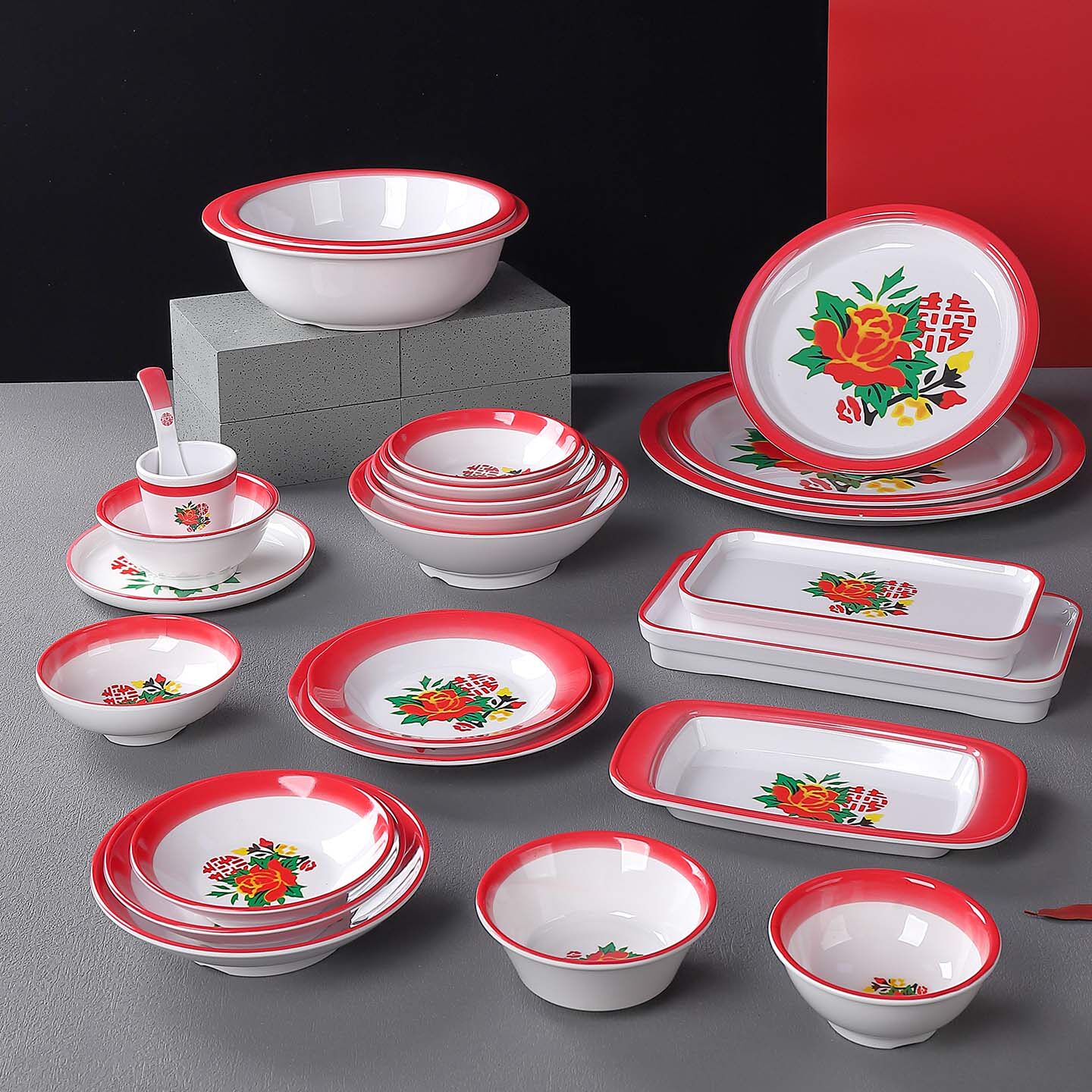 怀旧囍字碗老火锅店密胺餐具双喜盘复古90年市井老式 火锅盘子菜盘
