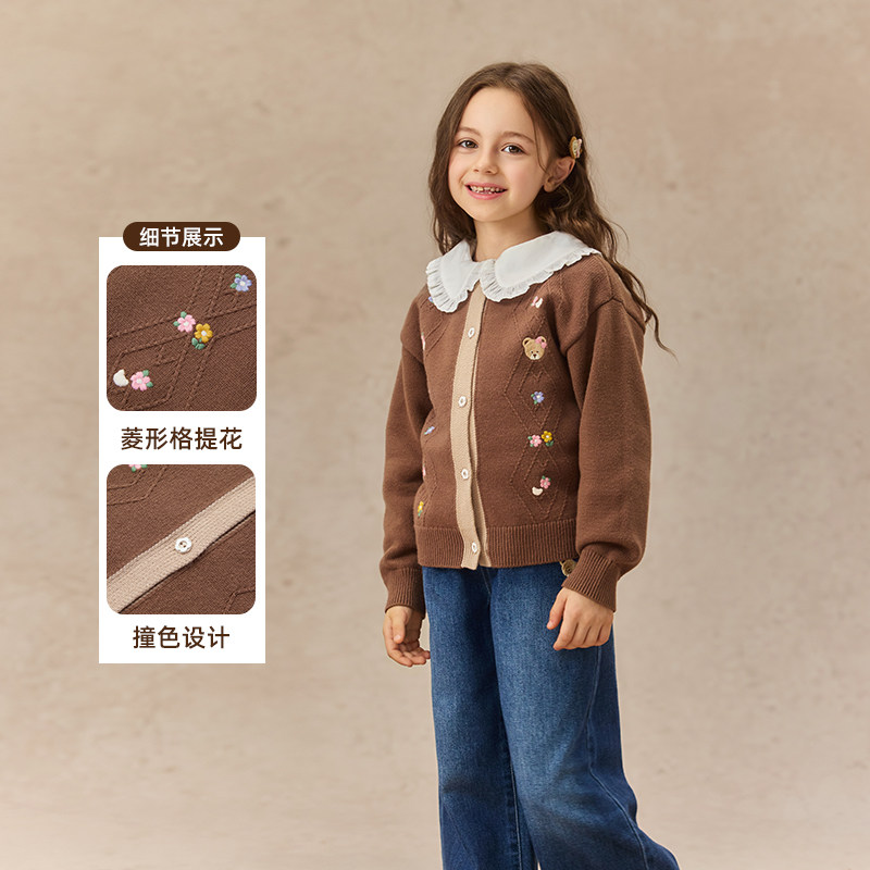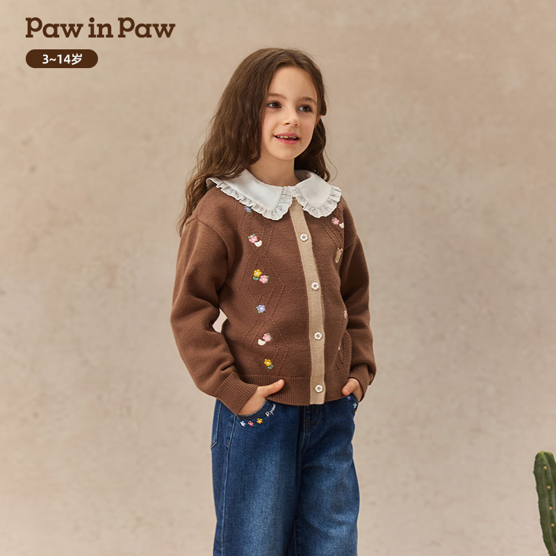 抗静电 女童毛衣开衫 PawinPaw卡通小熊童装 新款 学院风 25年秋季