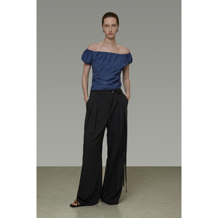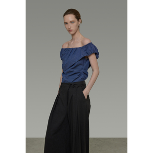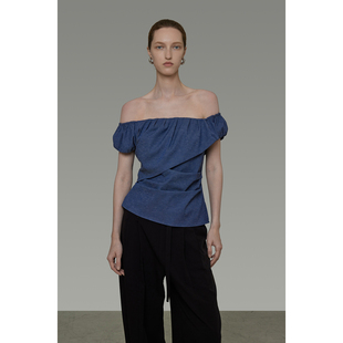 修身 UNSPOKEN不对称一字肩短袖 新款 女2026春装 显瘦高级感上衣 衬衫