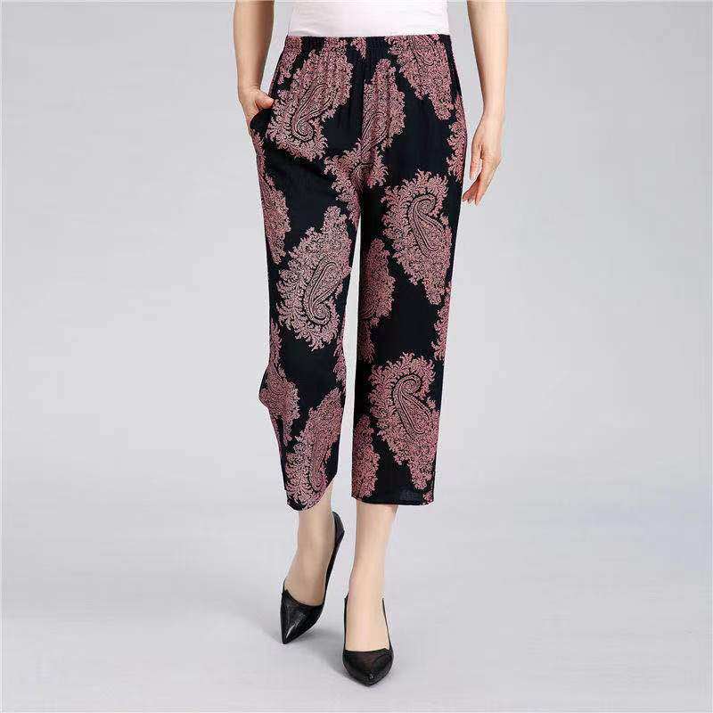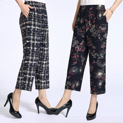 奶奶装 可外穿老太太八分长裤 休闲九分裤 长裤 女纯棉绸老人时尚 夏季