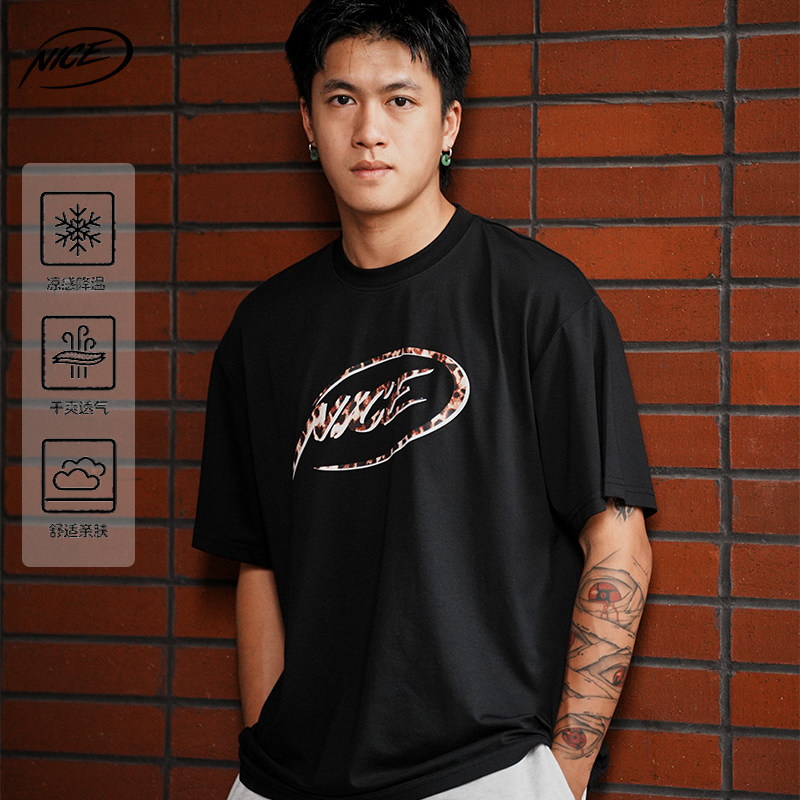T恤百搭潮流宽松小领口篮球短袖 圆领运动美式 男女 NICE NICEID