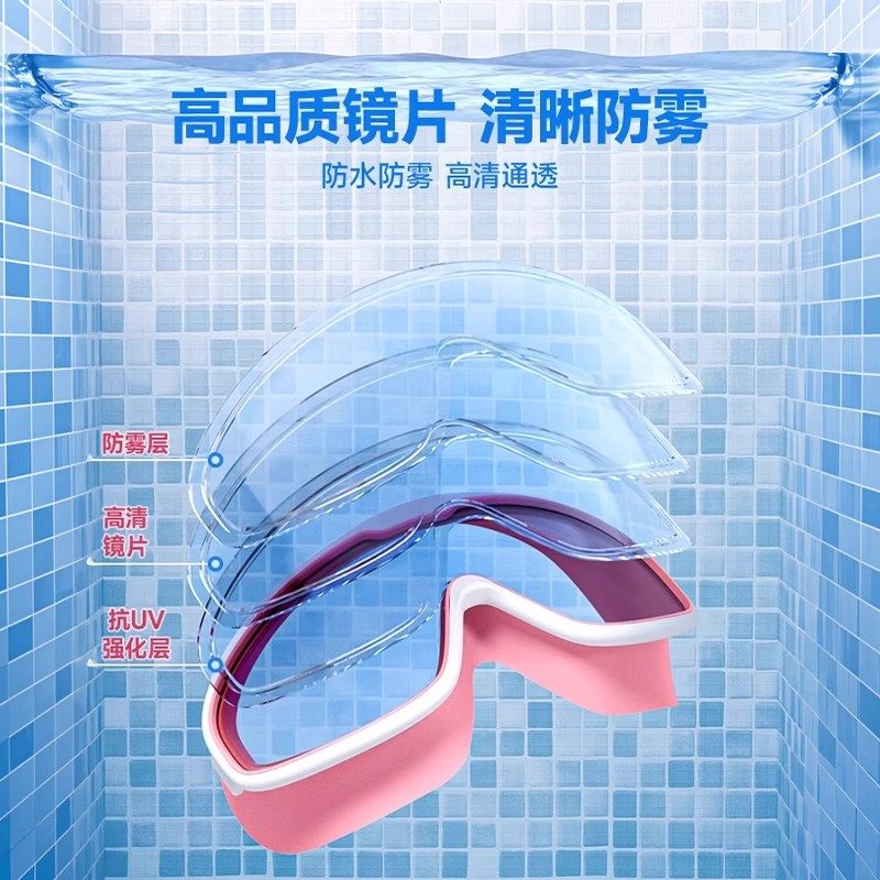 泳镜高清防雾防水儿童近视带度数游泳眼镜女男款 备 大框成人泳帽装