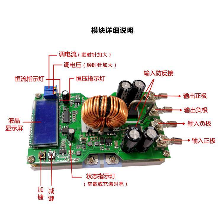 20A直流大功率可调降压电源模块双显恒压恒流液晶屏电压电流