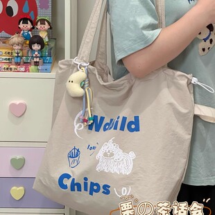 韩国ins慵懒风单肩包包女 手提袋托特包学生大容量帆布包 2025新款