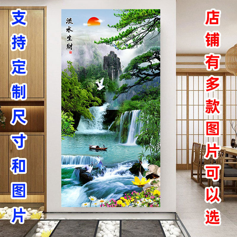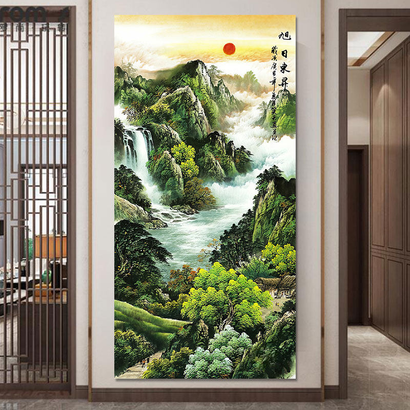 背景墙壁纸自粘 山水风景画进门入户过道竖版 玄关贴画装 饰画新中式