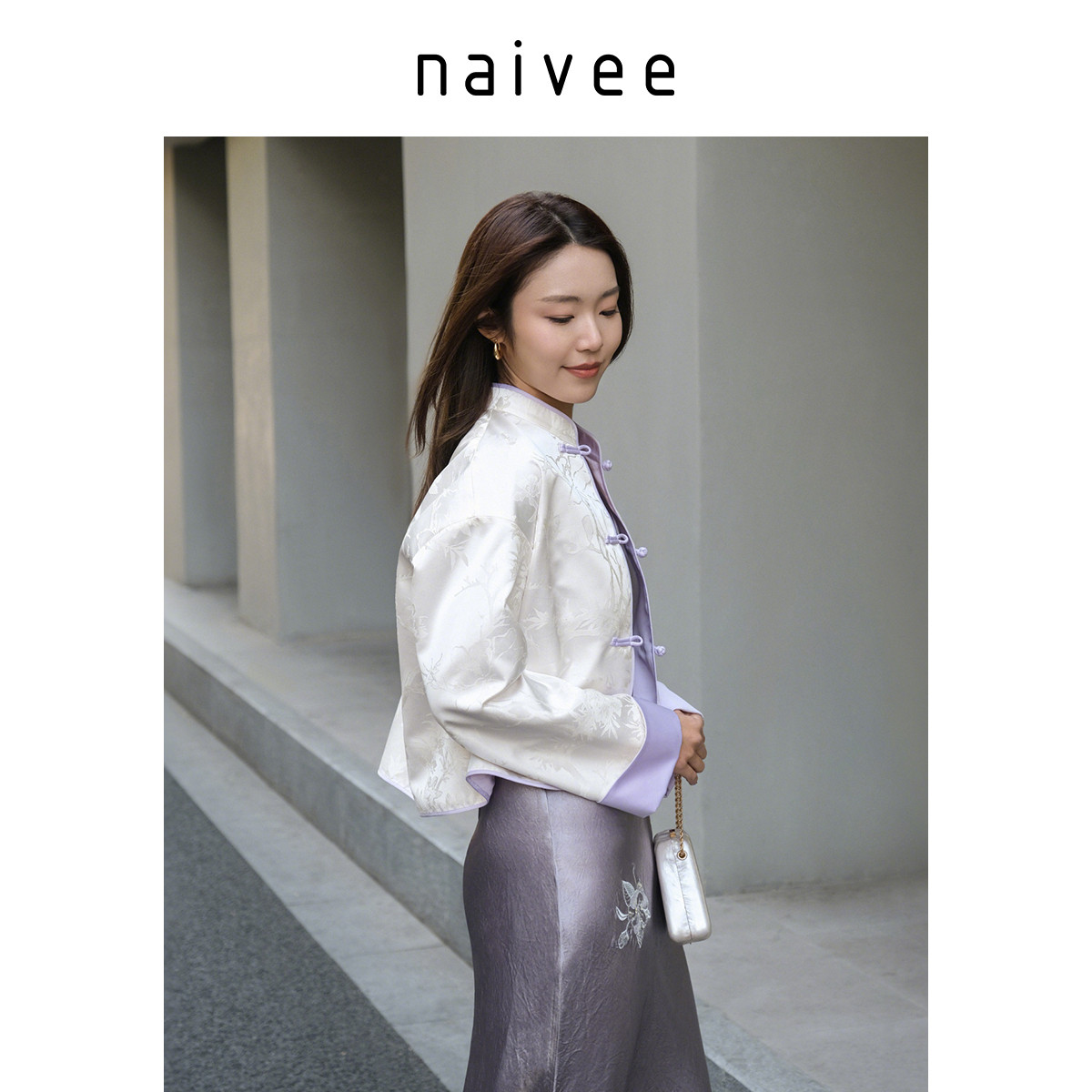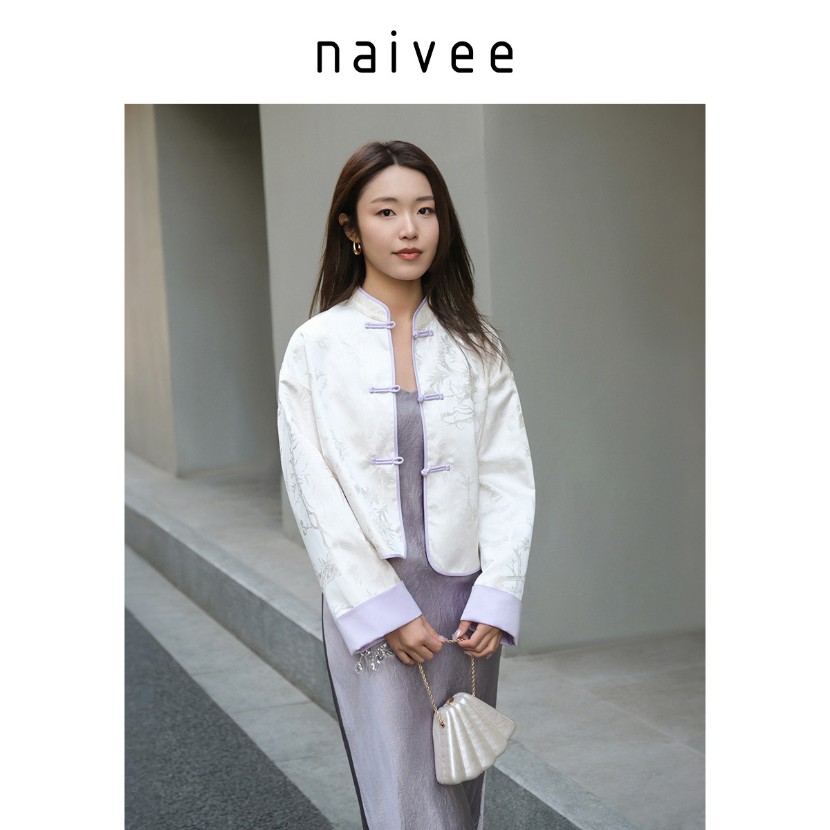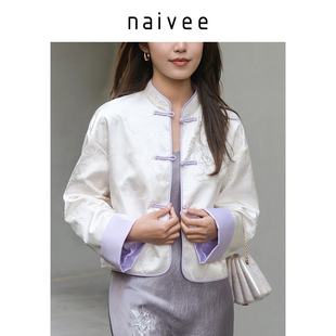 国风新中式 naivee纳薇25新款 立领短外套女缎面提花 紫气东来