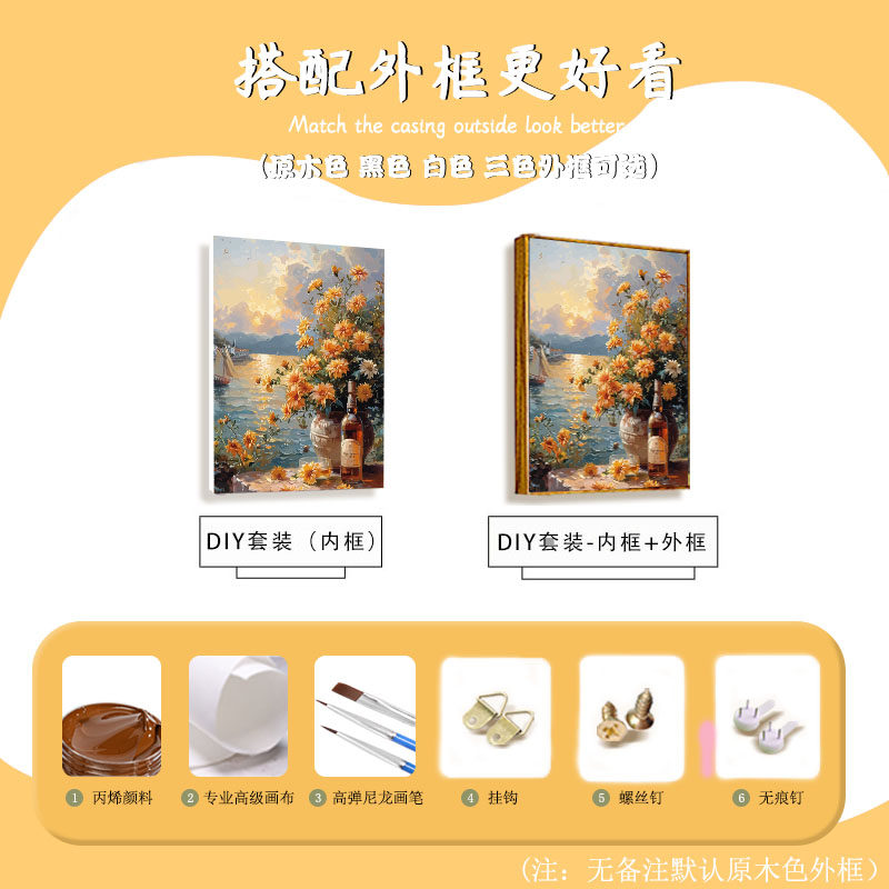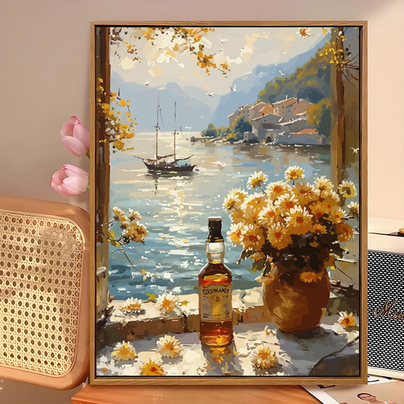 北欧风海边夕阳数字油画diy手工绘填充涂色治愈风景高级感装 饰画