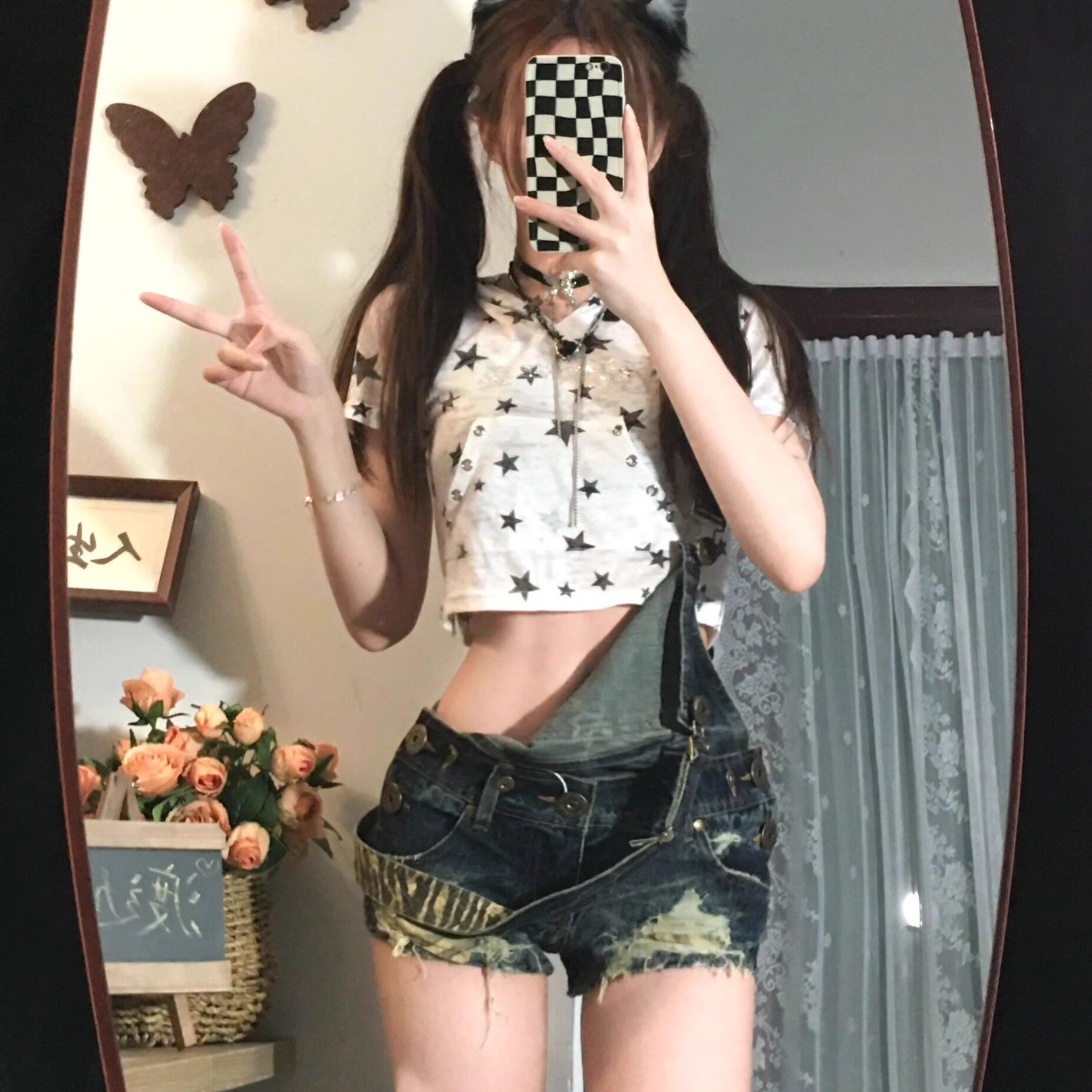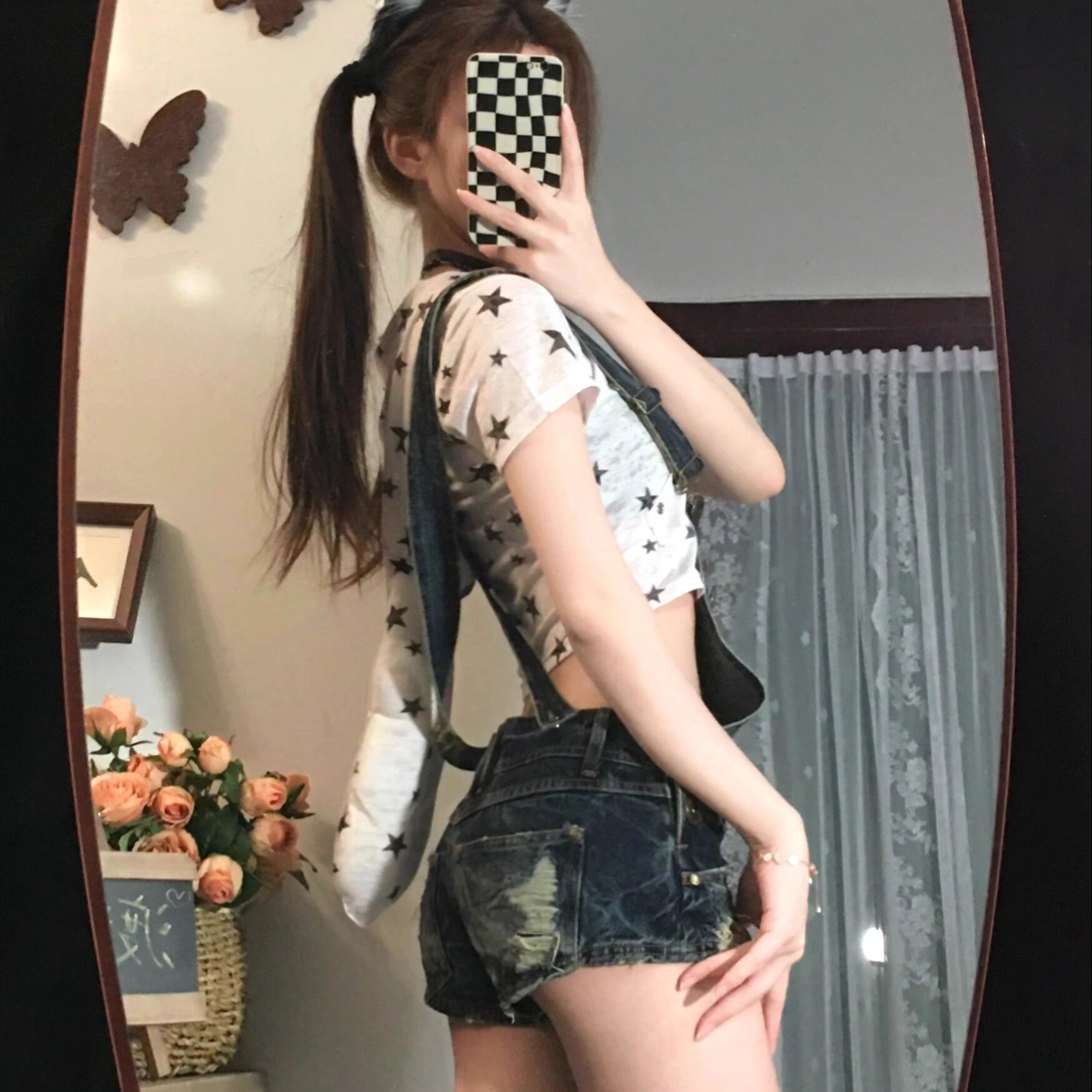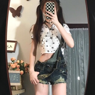 古着感亚比辣妹做旧磨破可拆卸两穿牛仔背带短裤 子潮 a字包臀热裤
