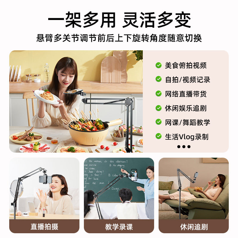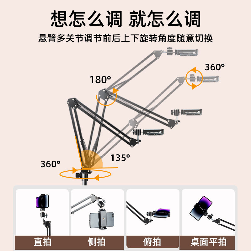 Ktele手机直播俯拍支架美食拍视频追剧自拍桌面落地懒人对镜直播架静物拍照美颜补光万向旋转横臂支架加重