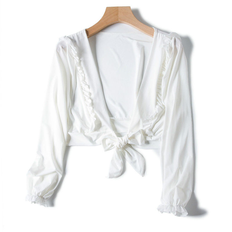 外搭可下水温泉学生保守显瘦仙气泳装 泳衣女夏外罩衫 单件长袖