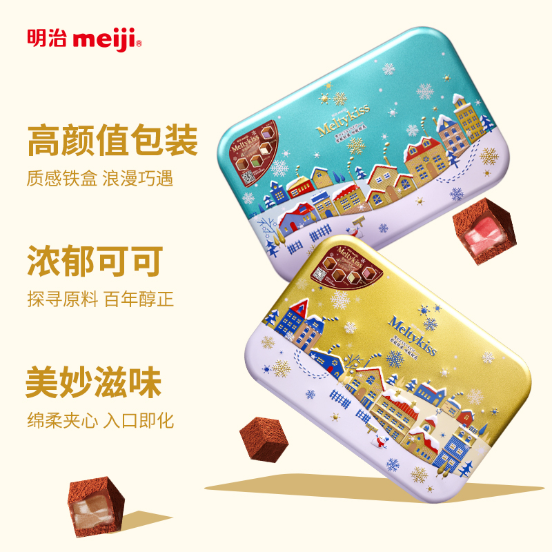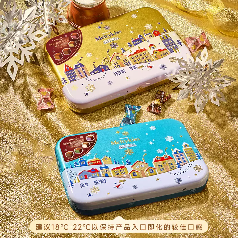 meiji明治雪吻巧克力精装 生日礼物礼品年货 礼盒226g蓝罐金罐铁盒