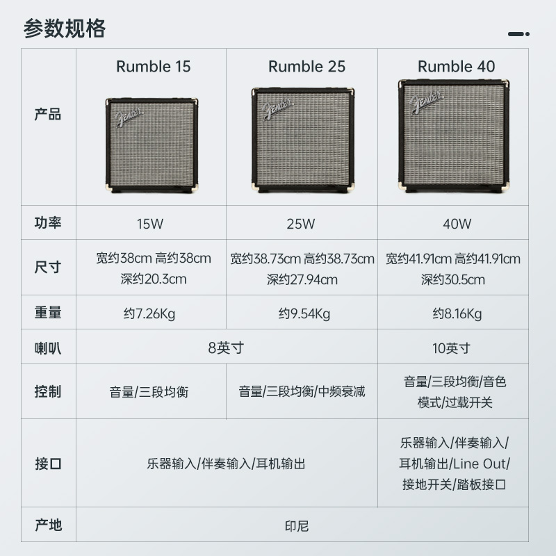 Fender芬达贝斯音箱Rumble15 40初学者演出练习电贝司音响BASS
