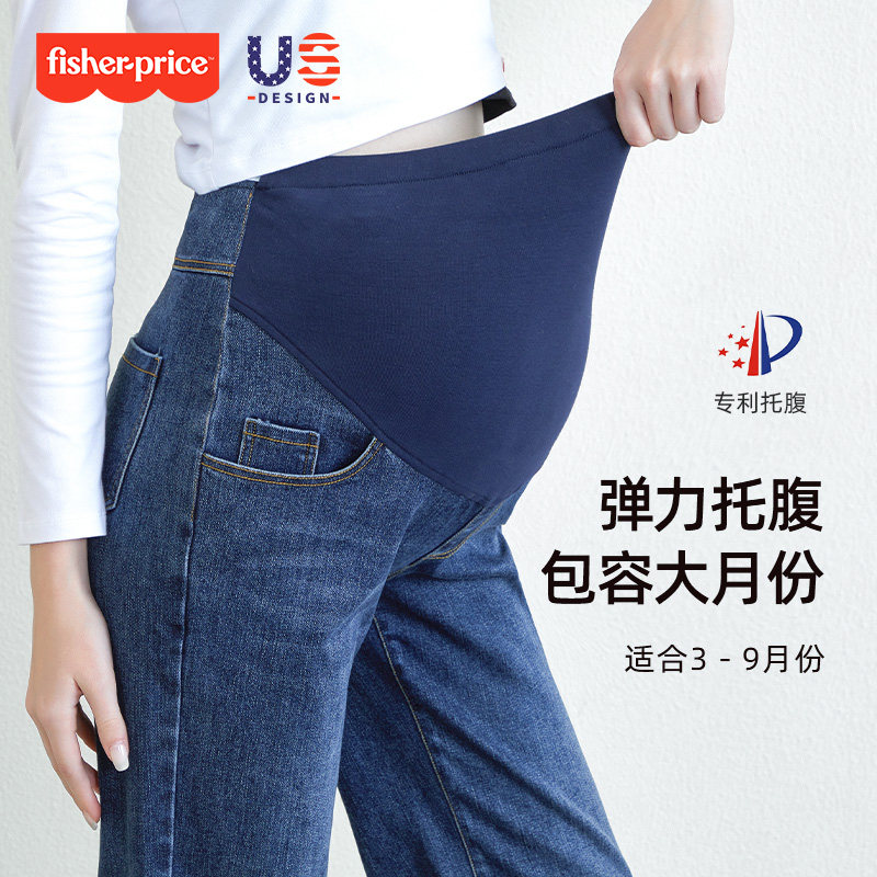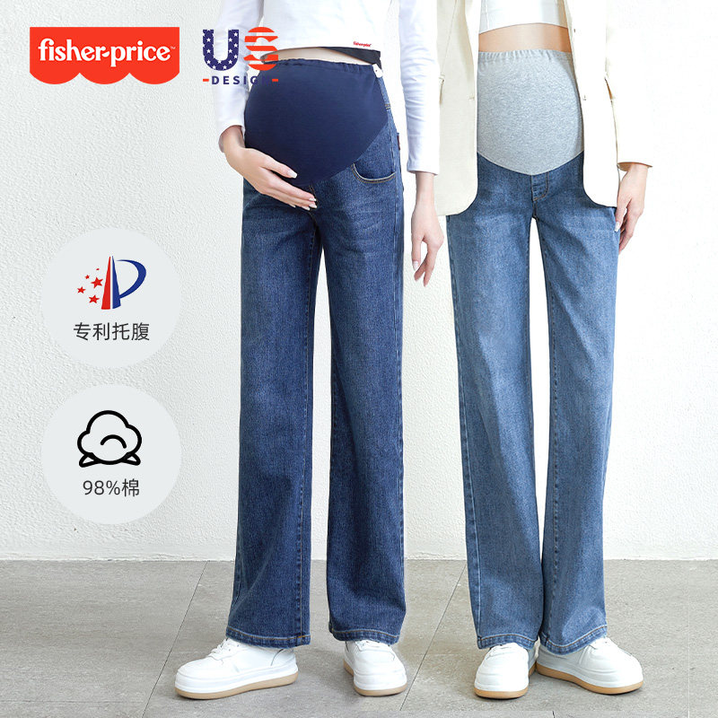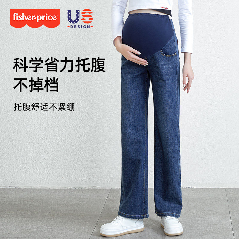 小个子休闲阔腿裤 费雪孕妇牛仔裤 宽松直筒裤 大码 2026春秋外穿新款