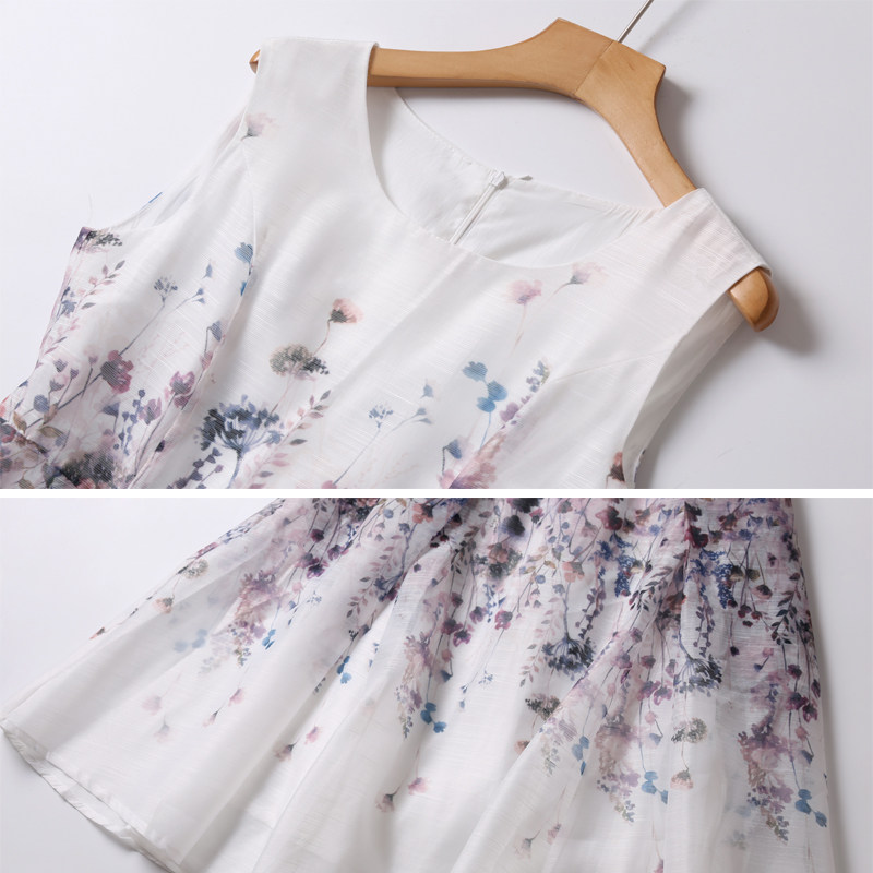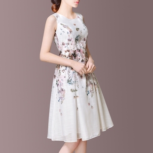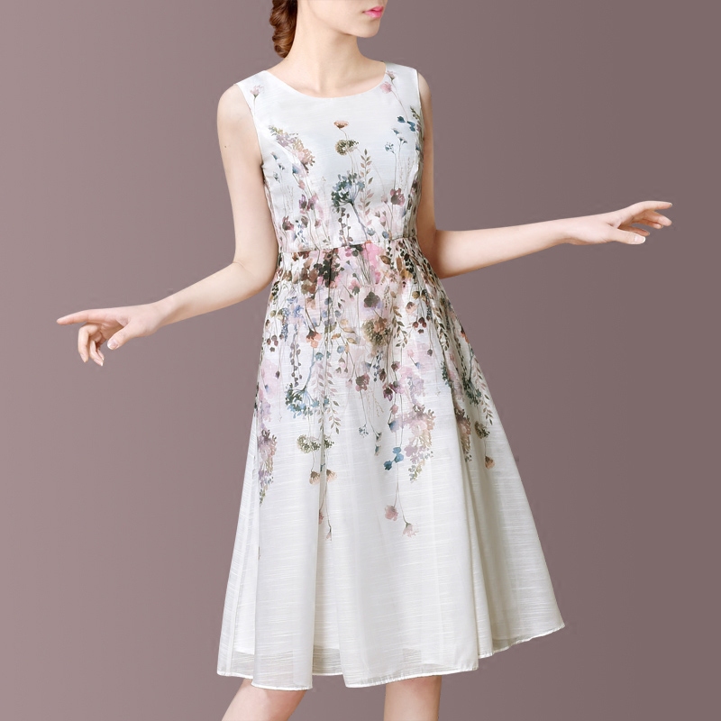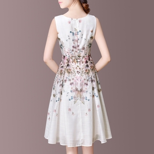尘埃之家2025夏新品 田园风印花百褶A摆连衣裙E44